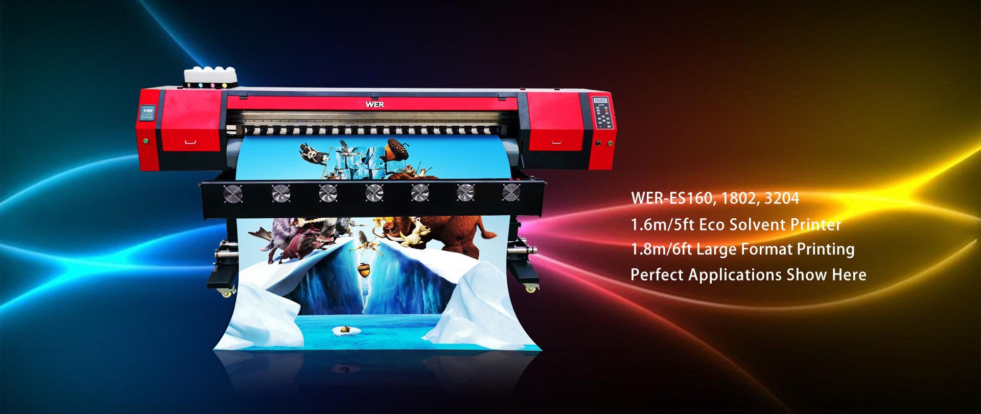 エコ溶剤プリンタは、主にフレックスバナー、バナー布、ビニール、ステッカー、バックライト付きフィルム、不透明ビニール、キャンバスなどの屋内および屋外広告物の印刷用です。